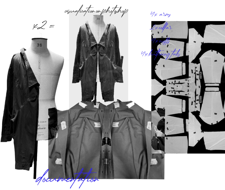 Pieces were made by duplicating patterns of mundane garments to create a unique outcome